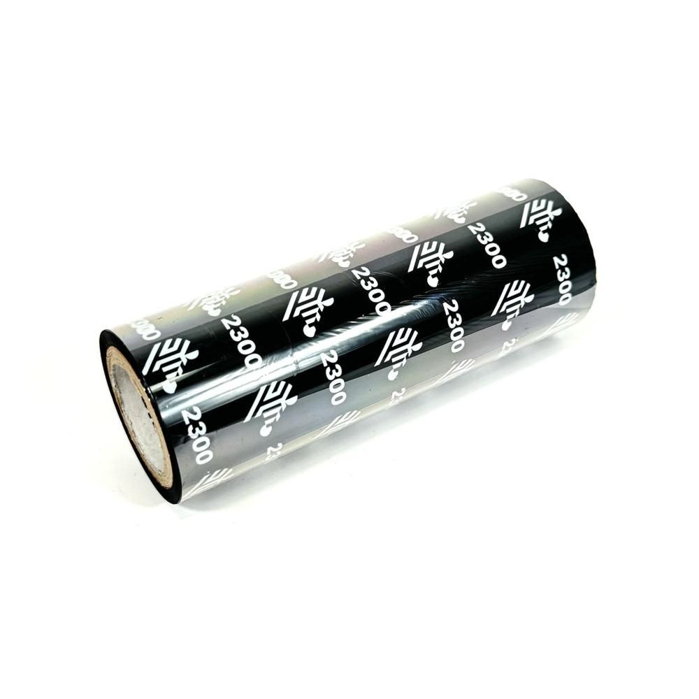 -Echantillon de ruban transfert thermique Zebra, couleur noir en cire qualité 2300 format 110mm x 50m en mandrin de 25.4mm.