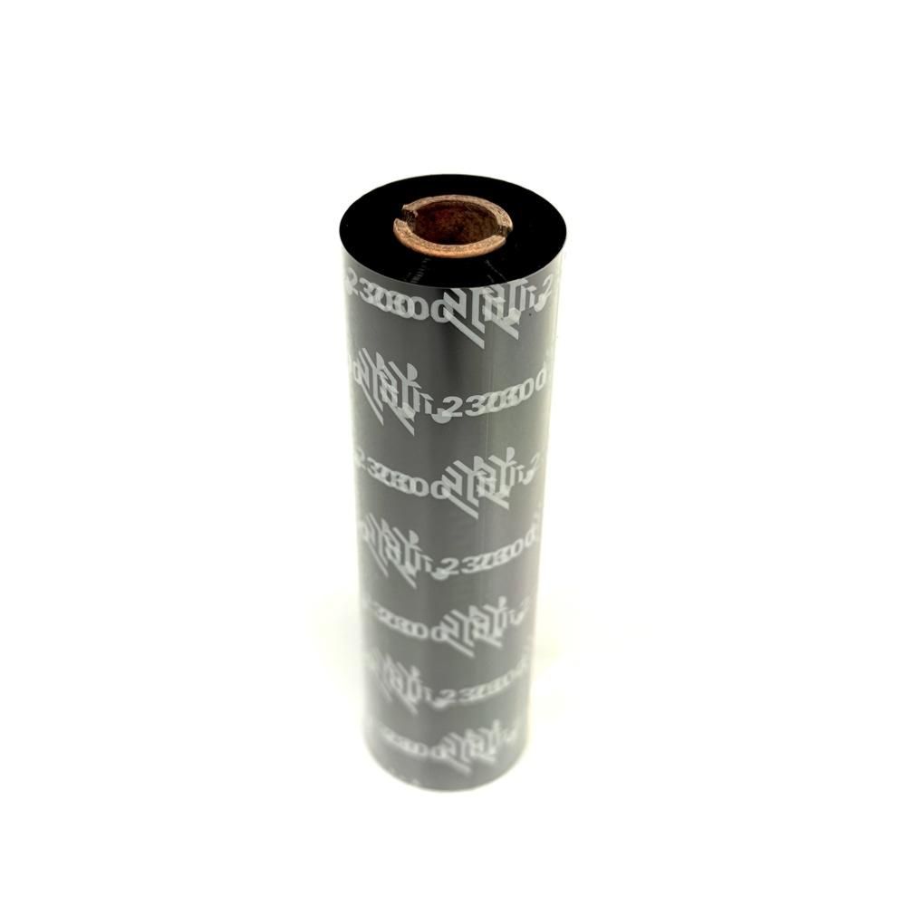 -Echantillon de ruban transfert thermique Zebra, couleur noir en cire qualité 2300 format 110mm x 74m en mandrin de 12.7mm.