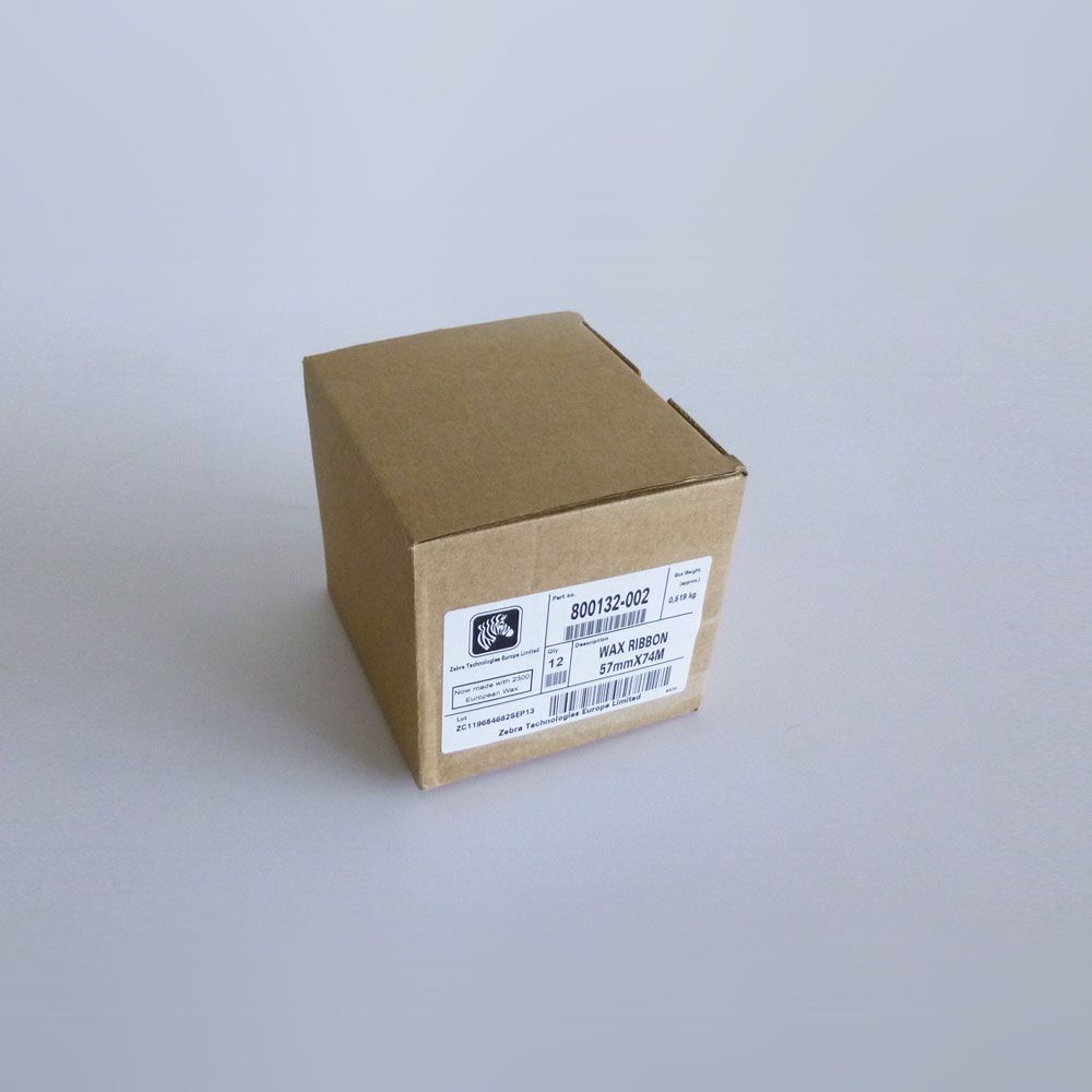 -Carton de 12 rubans transfert thermique Zebra, couleur noir en cire qualité 2300 format 56.9mm x 74m en mandrin de 12.7mm.
