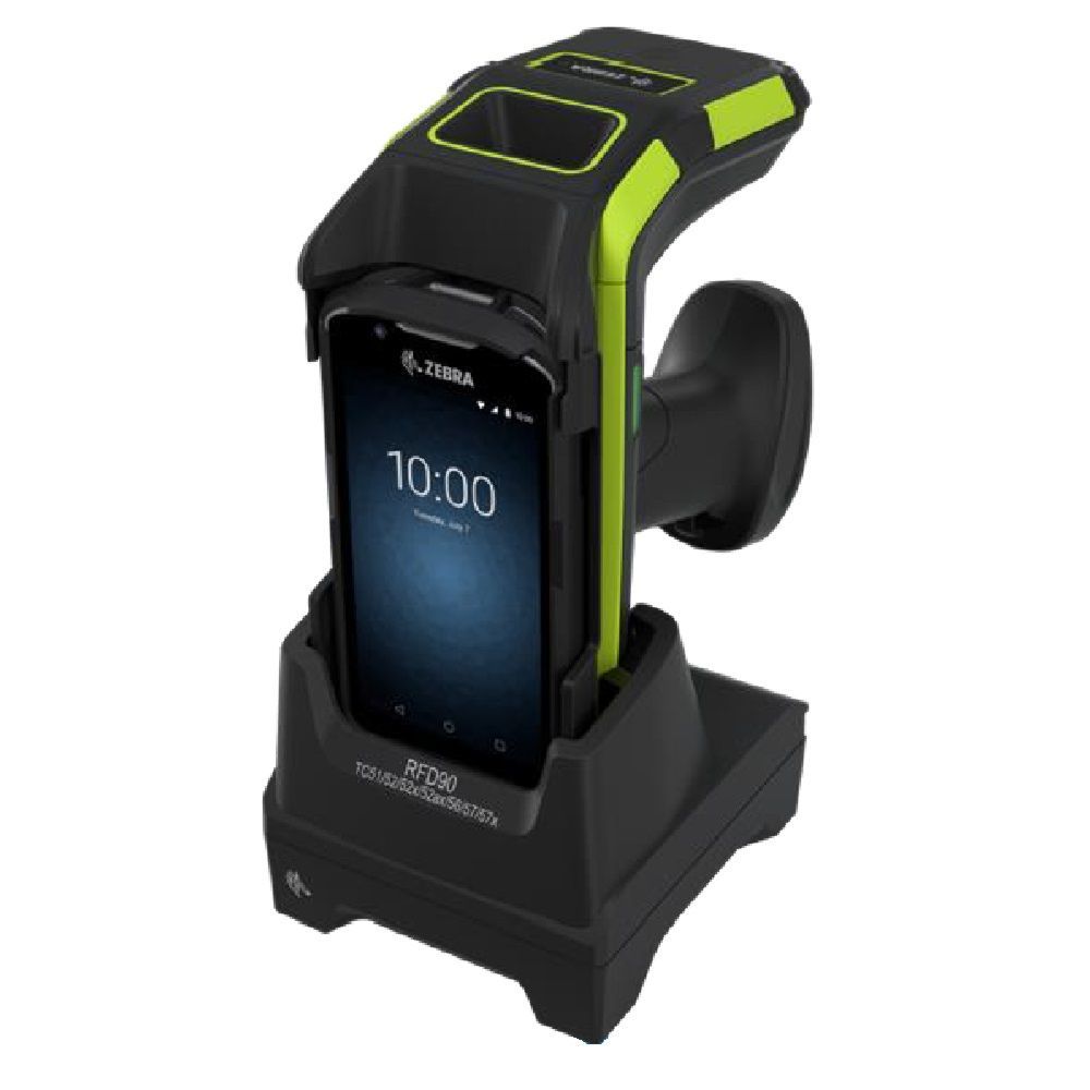 -Le socle charge à la fois le RFD90 seul, le TC51/TC52/TC52x/TC52ax/TC56/TC57/TC57x seul ou lorsqu'ils sont attachés ensemble. Ne charge pas les batteries de rechange. Nécessite les références suivantes : Pour charger un socle : Alimentation (PWR-BGA12V50W0WW), Cordon d'alimentation CC (CBL-DC-388A1-01), Cordon d'alimentation AC (50-16000-220R).