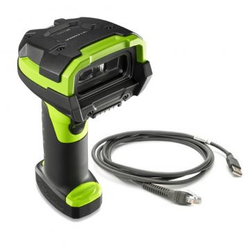-Kit complet, lecteur Imageur linéaire 1D - ZEBRA LI3608-SR - Filaire avec câble USB. Scanner code barres ultra-robuste certifié IP67. Couleur noire et verte.