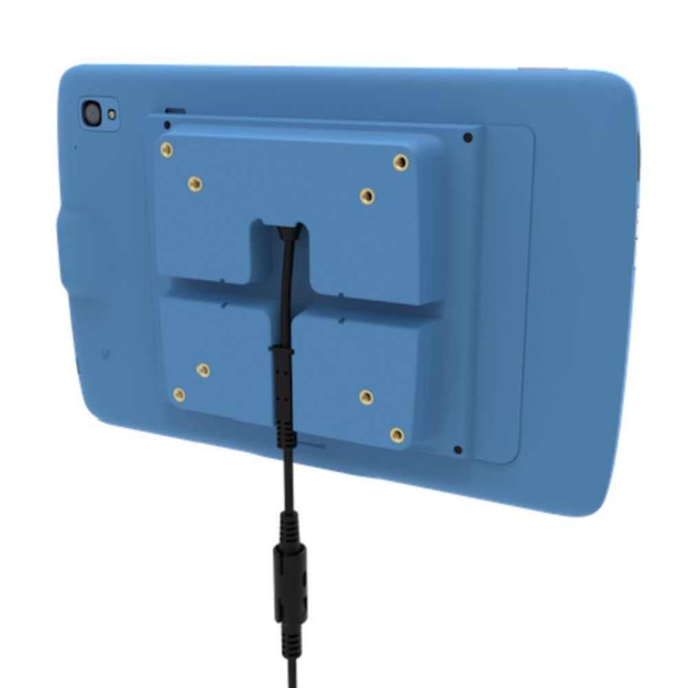 -Adaptateur VESA pour la santé ("HEALTHCARE") pour tablette de 10 pouces. Remplace le couvercle de batterie existant et se visse à l'arrière de la tablette. Alimente la tablette à l'aide des connecteurs pogo situés à l'arrière de la tablette. Sans : Alimentation PWR BGA12V50W0WW et câble CBL-DC-388A1-01. Sans : Câble avec fiche secteur Terre Europe (50-16000-220R)