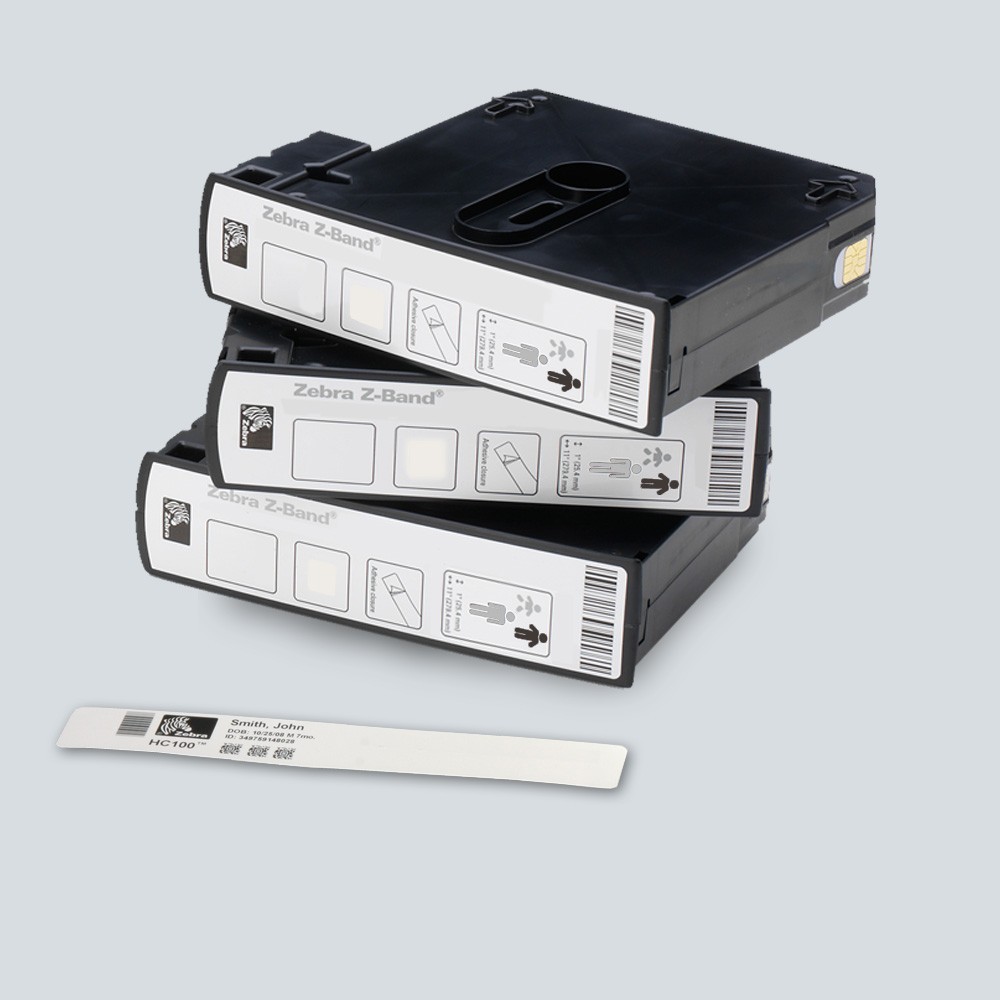 -Bracelets Zebra pour enfant format 25mmx178mm en polypropylène thermique direct, souple avec un adhésif inviolable pour la fixation. 300 bracelets par cartouche, 6 cartouches par boite. Les bracelets sont dans une cartouche à chargement facile pour les imprimantes HC100 & ZD510-HC.
