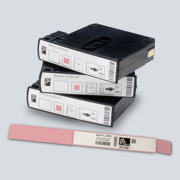 -Bracelets Zebra ultra souples pour adulte format 25mmx279mm en vinyl BORD ROSE et polypropylène thermique direct, ultra-doux, souple avec un adhésif inviolable pour la fixation. Scannable jusqu'à 14 jours. 175 bracelets par cartouche, 6 cartouches par boite. Les bracelets sont dans une cartouche à chargement facile pour les imprimante HC100 & ZD510-HC.