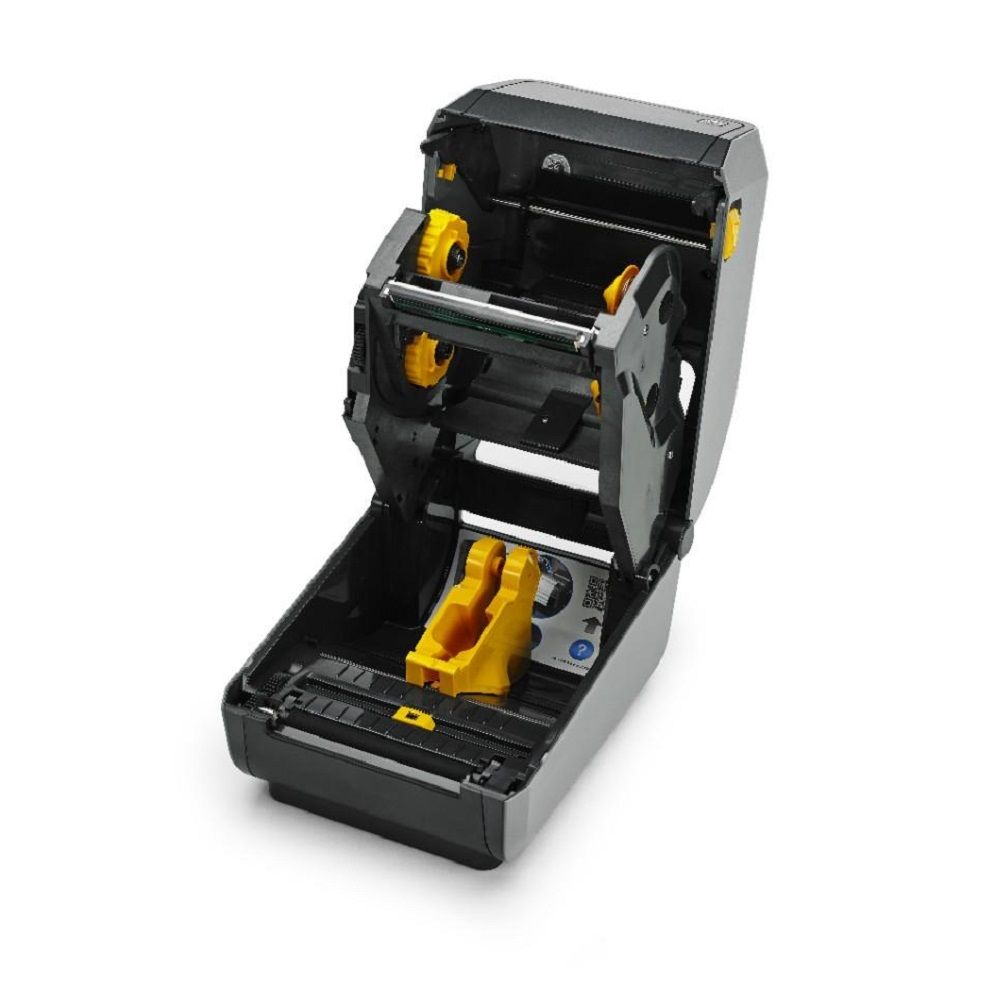 Imprimante étiquette de bureau Zebra ZD620 transfert thermique et Wi-Fi 802.11 a/b/g/n, en 203 dpi, Bluetooth Low Energie et RTC, interface Ethernet, RS232 et USB avec également un port USB Host, cellule réglable et 64Mo de mémoire flash utilisable.