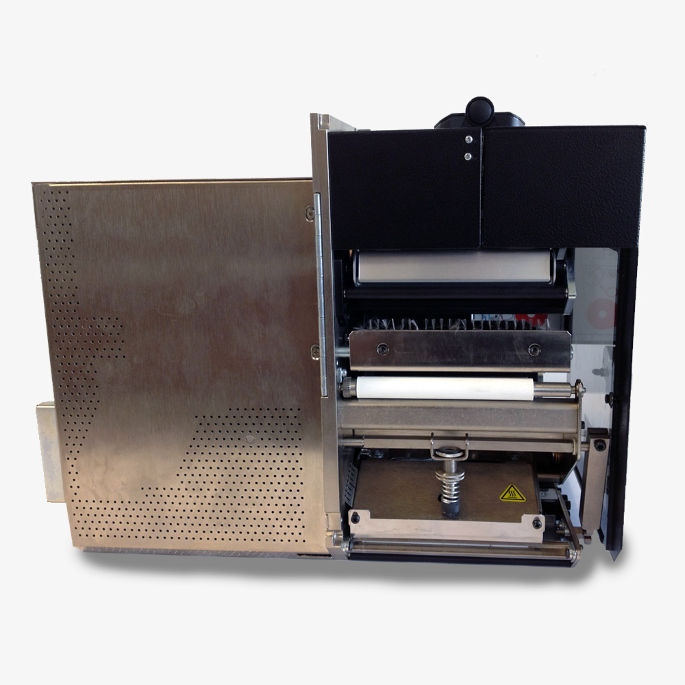 Bloc d’impression 110PAX4 transfert thermique, 300 dpi, ZPL, version gauche, série, parallèle, Zebranet radio (carte radio non inclus) avec 4Mo de mémoire flash et carte applicateur Entrée/Sortie 24V - 28V.