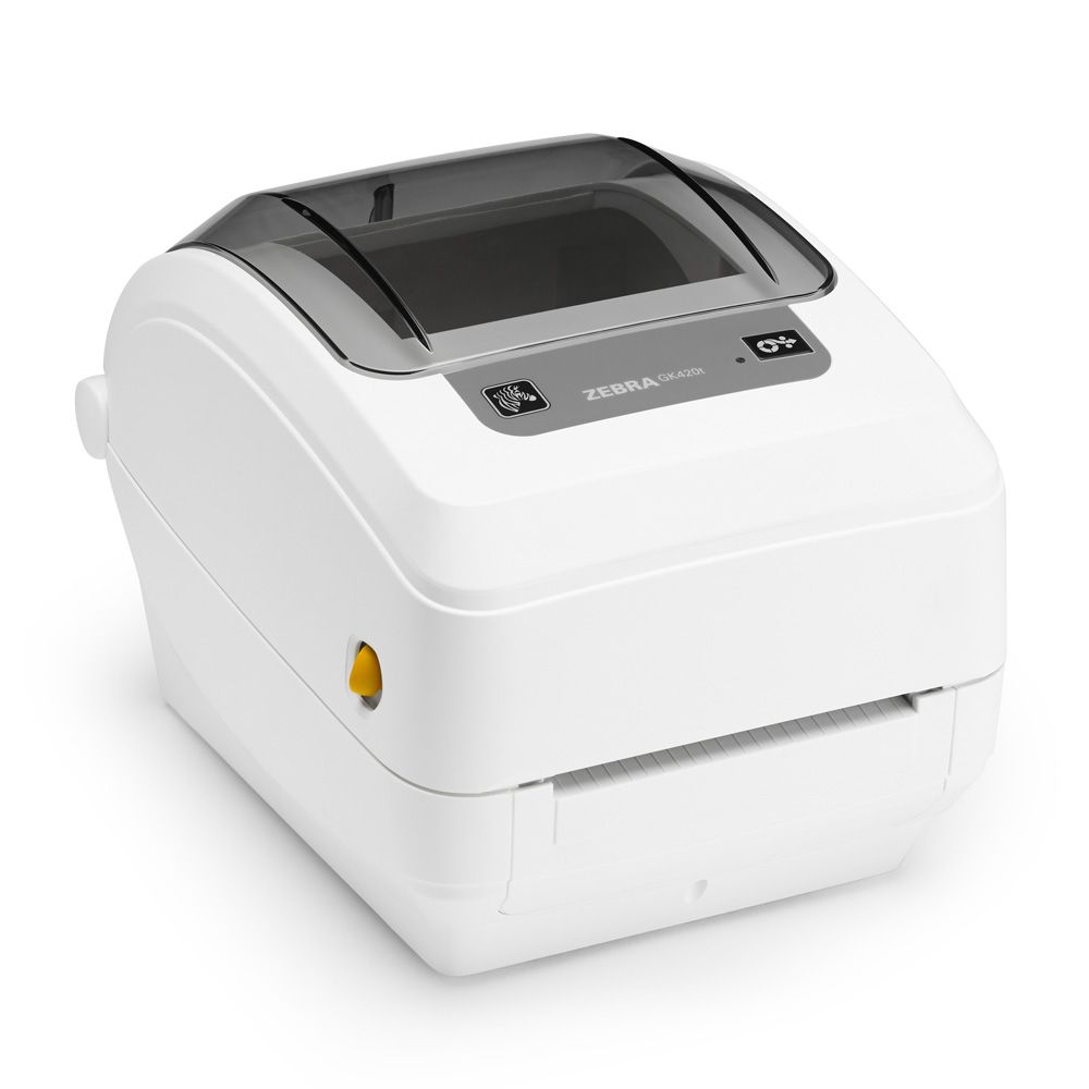 -Imprimante étiquette de bureau Zebra GK420d HEALTHCARE en transfert thermique, 203 dpi et 102 mm de largeur d’impression, language EPL et ZPL, USB, série et parallèle et 4Mo de mémoire flash, 8Mo de SDRAM.
