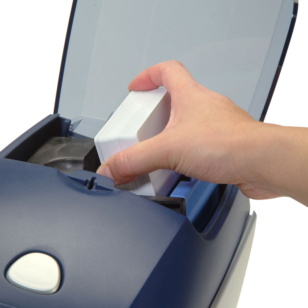 -Imprimante cartes couleur économique Zebra P120i recto verso avec chargeur de 100 cartes, écran LCD 16 caractères, encodeur magnétique HiCo/LoCo trois pistes (cartes 0,762 mm seulement) avec connexion Ethernet et USB.