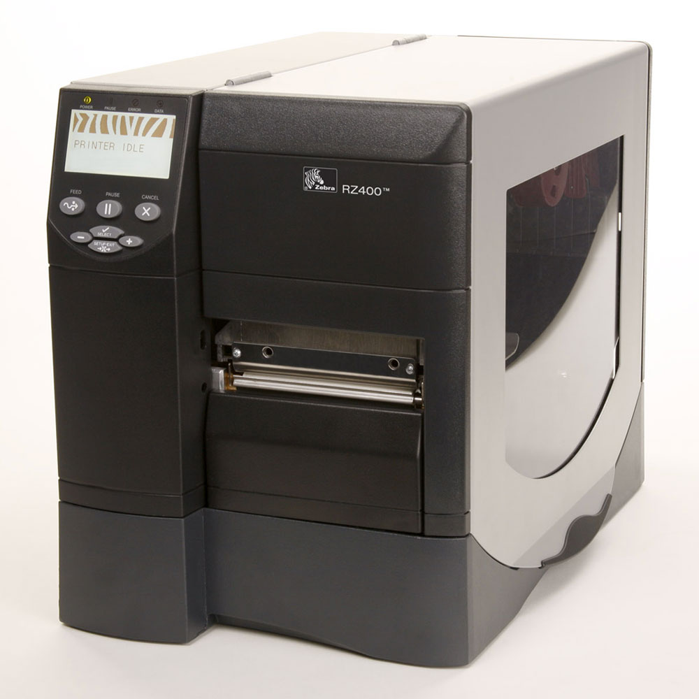 -Imprimante étiquette industrielle Zebra RZ400 avec encodeur RFID (UHF), transfert thermique en 203 dpi et 104 mm de largeur d’impression, ZPL, 8Mo de mémoire flash, Zebranet radio (Carte radio non incluse).