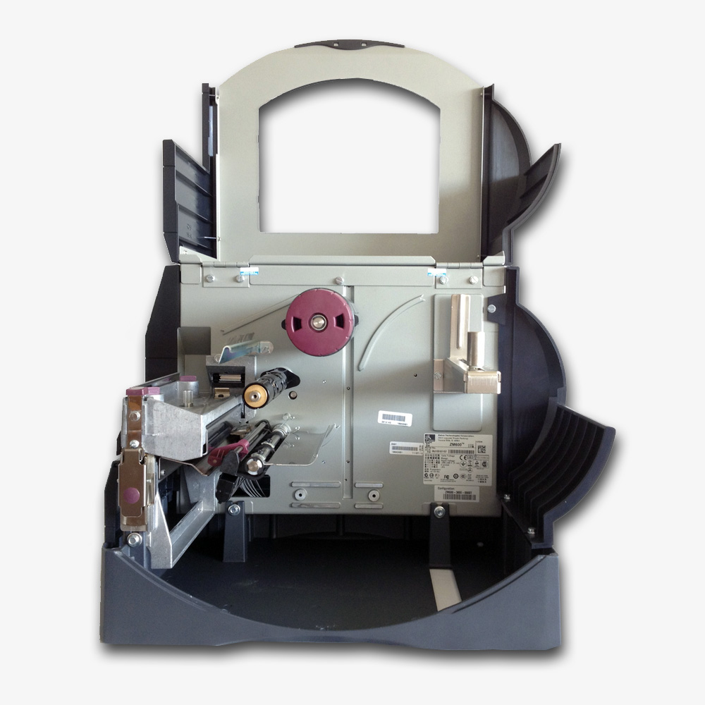 -Imprimante étiquette industrielle Zebra ZM400, transfert thermique en 203 dpi et 104 mm de largeur d’impression, langage ZPL, 8Mo de mémoire flash, rembobineur complet d’étiquette et décollement avec Zebranet radio (Carte radio non incluse) et encrage intérieur.