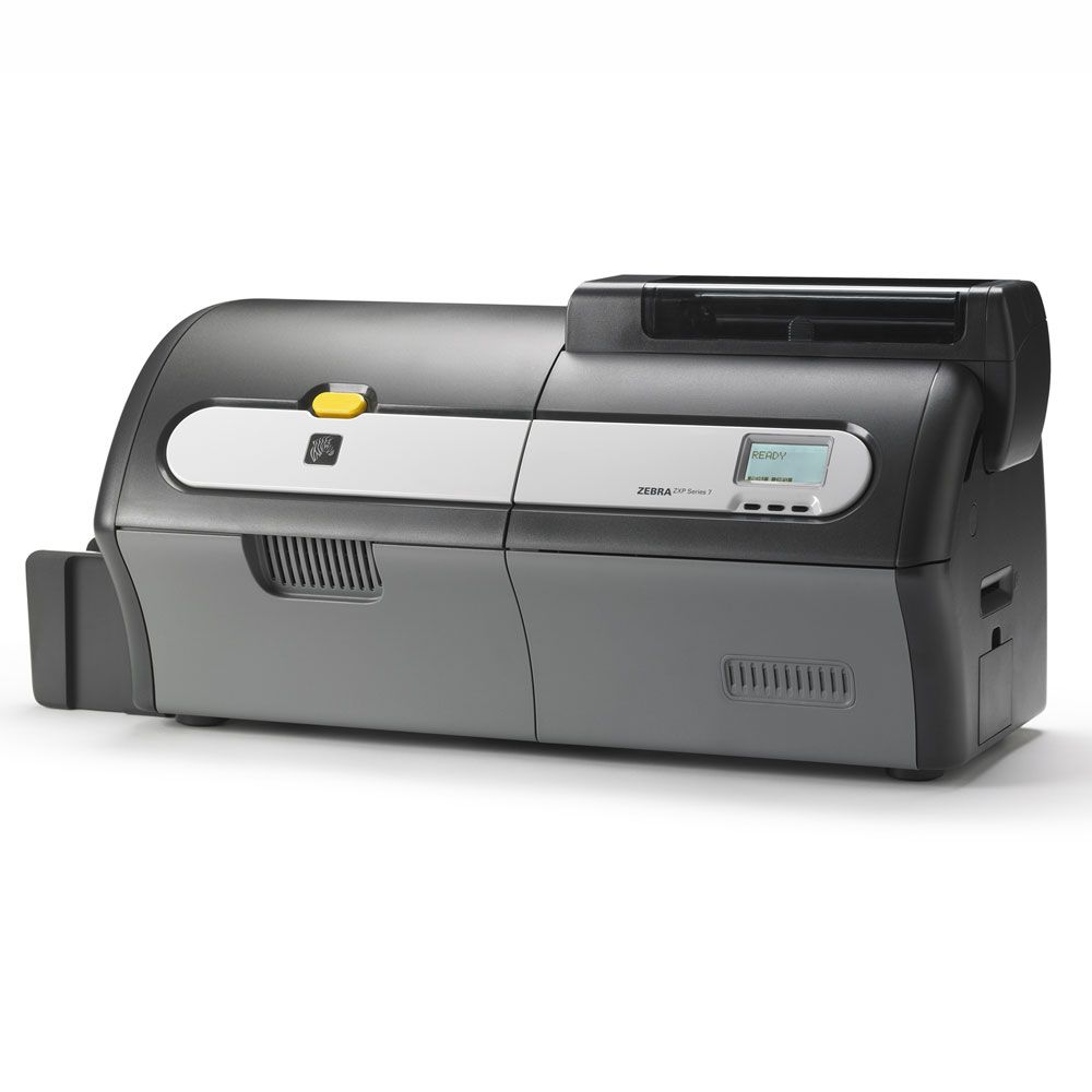 Imprimante carte couleur ZXP 7 recto uniquement avec station de contact puce et chargeur de 100 cartes, écran LCD 16 caractères avec connexion USB et Ethernet.